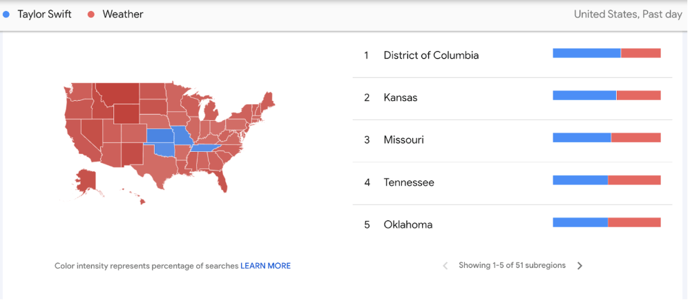 On her album release day, five U.S. regions searched for Taylor Swift more than the weather.
